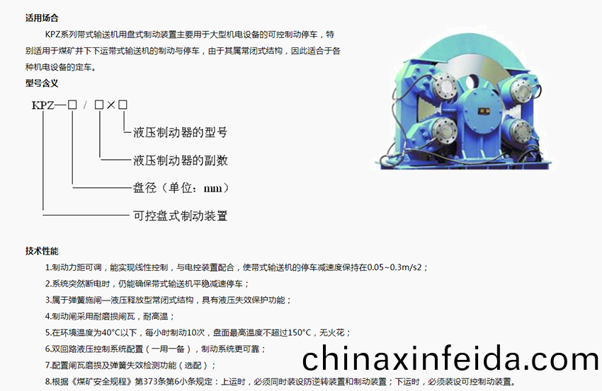 KPZ係列製動器主要用于下運帶式輸送機或大傾角上運式(shi)輸送(song)機(ji)等大型機電設備的可控製動與停車,